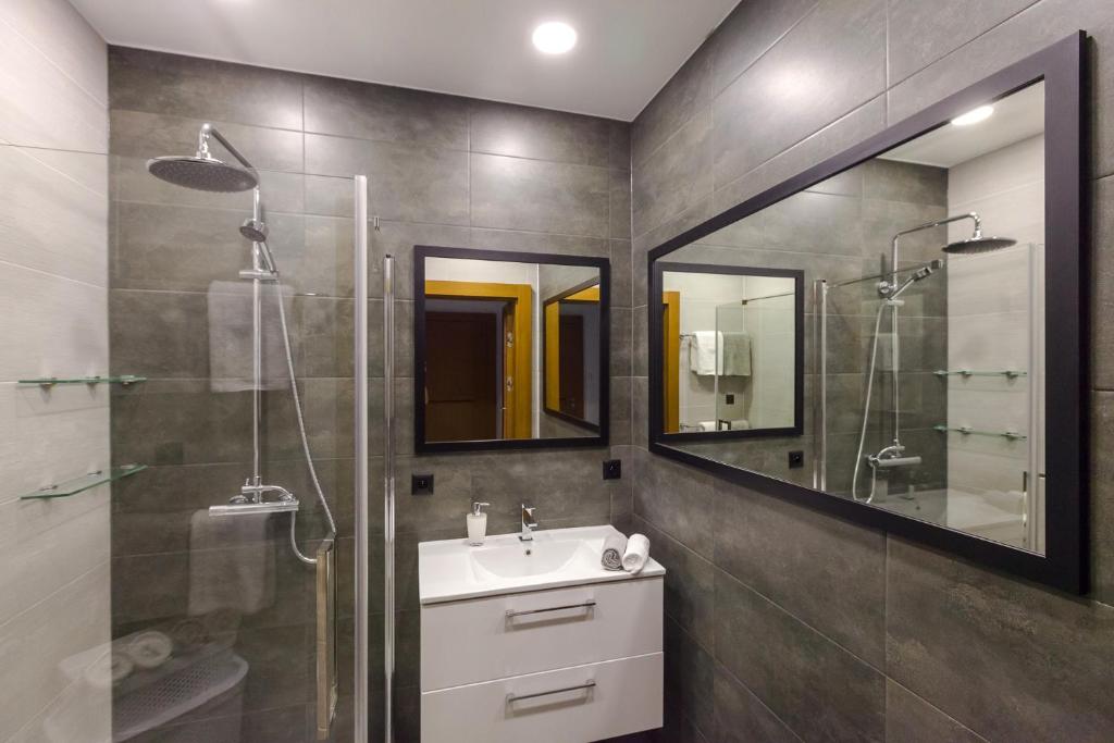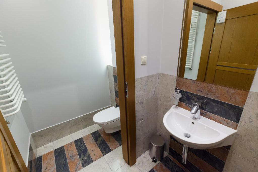 The living room is equipped with LED TV. Two bathrooms – the first contains a shower and sink, the second a toilet and sink.